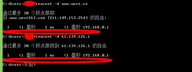 第二步: 輸入tracert -d 域名/域名 回車,如下圖: