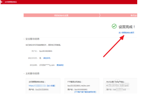 3.設(shè)置完成,點(diǎn)擊進(jìn)入管理臺(tái)首頁。