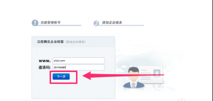 此時進入到添加企業(yè)信息的頁面,按照要求輸入我們的企業(yè)域名和邀請碼,然后點擊頁面下方的“下一步”按鈕進入下一步。(頁面這時候會進入郵箱和域名之間的解析驗證,按照要求,對照視頻一步步完成即可。)