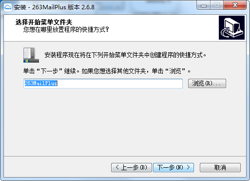 3、選擇開始菜單文件夾,默認即可,點擊下一步