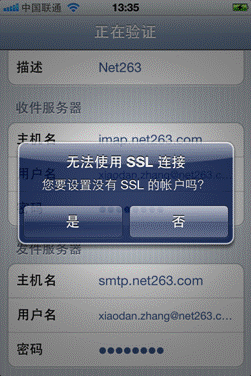 6.點擊“儲存”,稍后手機屏幕會跳出SSL連接的對話框,點擊“是”。