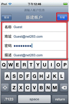 4.填寫完整的郵箱地址及郵箱密碼,名稱及描述字段可以隨意填寫。