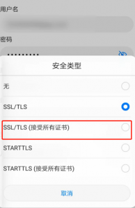 6、選擇SSL/TLS(接受所有證書)。