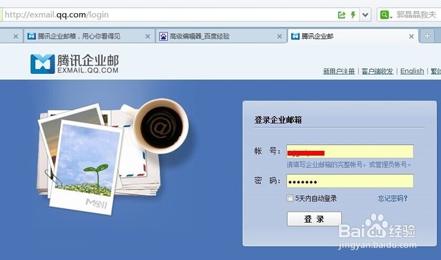 打開http://exmail.qq.com;數據您填寫的用戶名和密碼