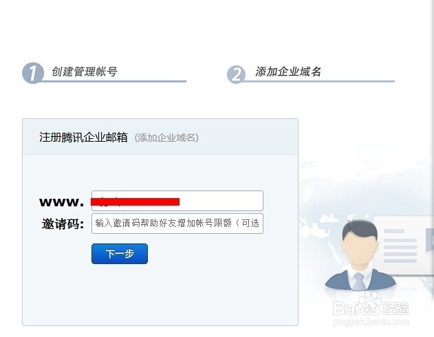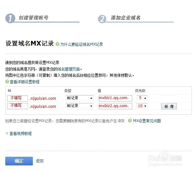 進入企業郵箱管理頁面,然后按照頁面提示填寫域名即可