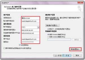 2.2在“添加新賬戶”窗口中,輸入您個人的“用戶信息”、“登錄信息”,而“服務器信息”則按照頁面的提示進行填寫。