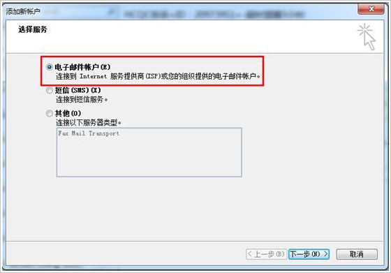 4. 選擇Internet 電子郵件服務,并單擊下一步