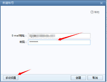 3.在新建賬號(hào)的小窗口,輸入正確的騰訊企業(yè)郵箱賬號(hào)和密碼后,再點(diǎn)擊手動(dòng)設(shè)置(如圖三所示);
