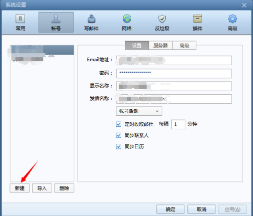 2.打開如上所述的設(shè)置欄目后,就如顯示圖二所示界面,我們只要在騰訊企業(yè)郵箱客戶端設(shè)置界面點(diǎn)擊賬號(hào),單擊新建,就可以進(jìn)入下一步操作;