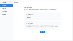 騰訊免費版企業郵箱申請填寫域名界面,輸入需要關聯的域名點擊“下一步”之后如下圖所示: