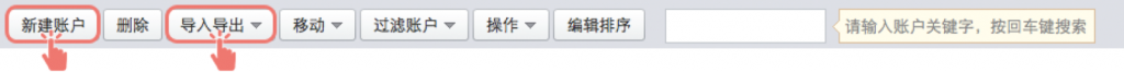 3、 點擊“新建賬號”或批量操作“導入導出”賬號。