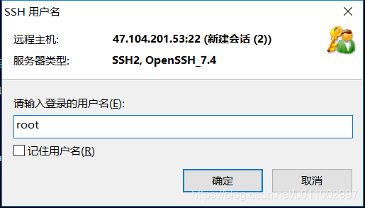 (2)輸入登錄用戶名,點擊確定。(未添加用戶之前只有一個root用戶)。