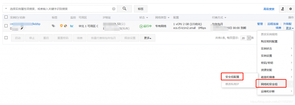 (1)在控制臺,點擊:更多–>網絡和安全–>安全組配置