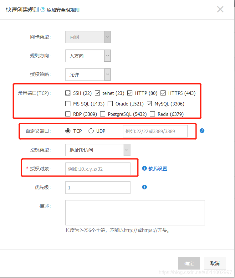 (4)選則需要訪問的端口號,也可以自定義添加,授權對象填寫0.0.0.0/0。