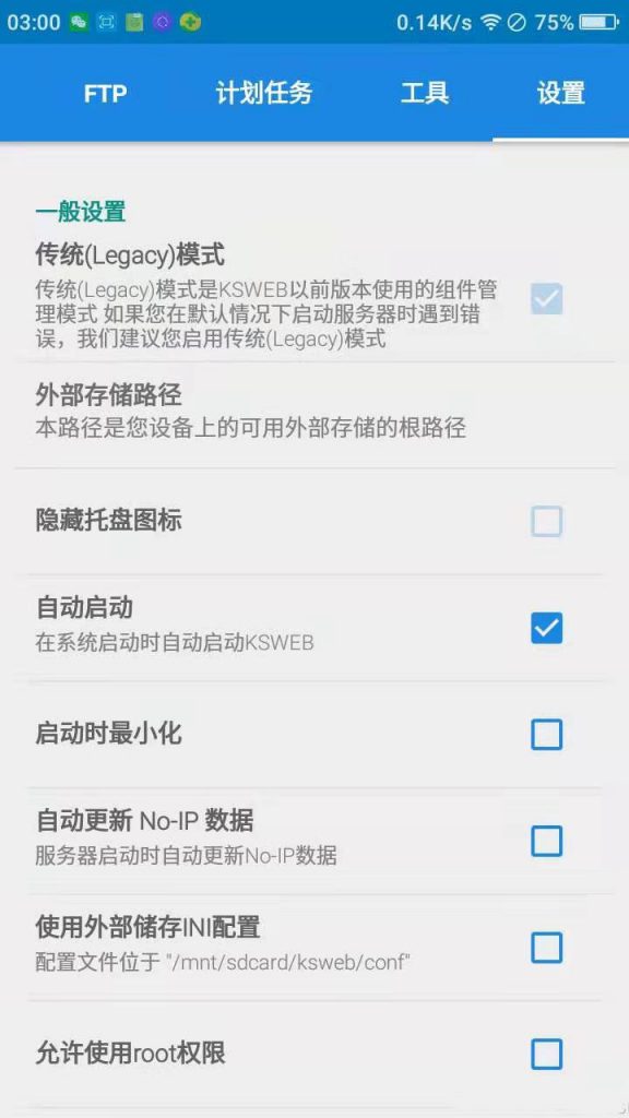 3、安裝后到設置里勾選自動啟動、啟動時最小化、鎖定WiFi(防止息屏斷網)