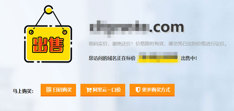 1、買方在瀏覽器中訪問要購買的域名,如下圖所示,點擊阿里云一口價;