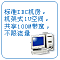 說明:標準IDC機房,機架式1U空間,共享100M帶寬,不限流量, MRTG實時流量監控,服務器狀態報警, 1個IP地址,24*7技術支持。